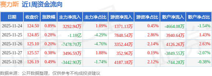 资金流向数据方面,本周赛力斯主力资金合计净流出1.59亿元,游资资金合计净流入1.71亿元,散户资金合计净流出1191.0万元。本周资金流向一览见下表: