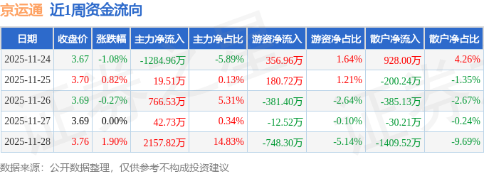 资金流向数据方面,本周京运通主力资金合计净流入1701.64万元,游资资金合计净流出604.54万元,散户资金合计净流出1097.1万元。本周资金流向一览见下表: