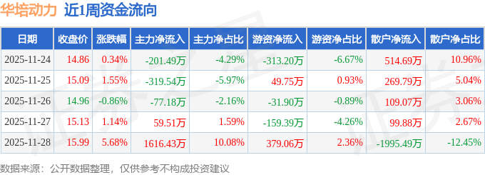 资金流向数据方面,本周华培动力主力资金合计净流入1077.73万元,游资资金合计净流出75.68万元,散户资金合计净流出1002.04万元。本周资金流向一览见下表: