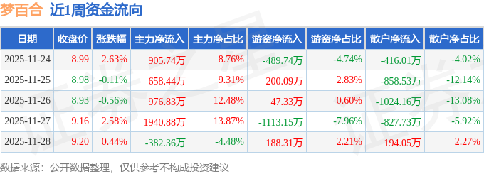 资金流向数据方面,本周梦百合主力资金合计净流入4099.53万元,游资资金合计净流出1167.15万元,散户资金合计净流出2932.38万元。本周资金流向一览见下表: