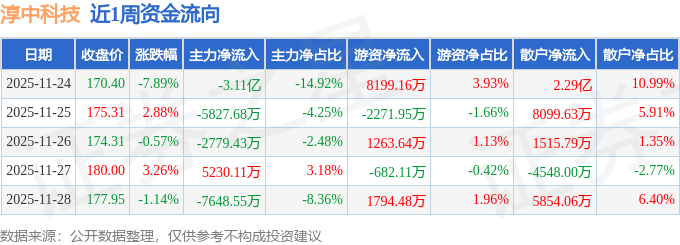 资金流向数据方面,本周淳中科技主力资金合计净流出4.22亿元,游资资金合计净流入8303.22万元,散户资金合计净流入3.39亿元。本周资金流向一览见下表: