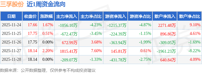 资金流向数据方面,本周三孚股份主力资金合计净流入550.77万元,游资资金合计净流出2089.67万元,散户资金合计净流入1538.9万元。本周资金流向一览见下表: