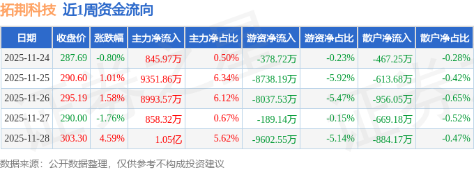 资金流向数据方面,本周拓荆科技主力资金合计净流入3.05亿元,游资资金合计净流出2.69亿元,散户资金合计净流出3590.33万元。本周资金流向一览见下表: