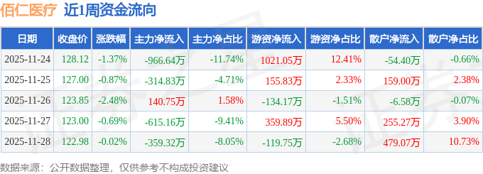 资金流向数据方面,本周佰仁医疗主力资金合计净流出2115.2万元,游资资金合计净流入1282.85万元,散户资金合计净流入832.35万元。本周资金流向一览见下表:
