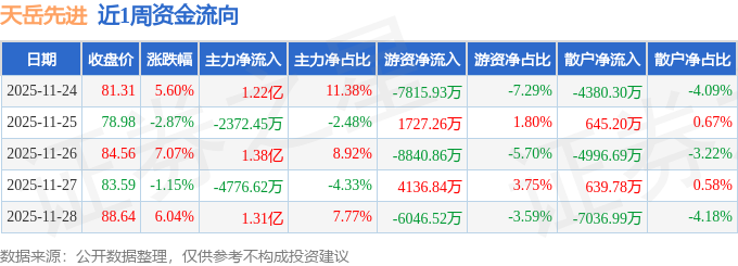 资金流向数据方面,本周天岳先进主力资金合计净流入3.2亿元,游资资金合计净流出1.68亿元,散户资金合计净流出1.51亿元。本周资金流向一览见下表: