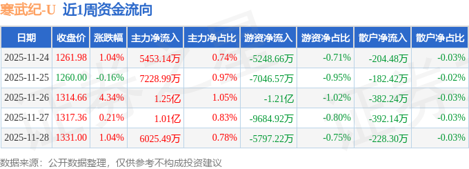 资金流向数据方面,本周寒武纪主力资金合计净流入4.13亿元,游资资金合计净流出3.99亿元,散户资金合计净流出1389.57万元。本周资金流向一览见下表: