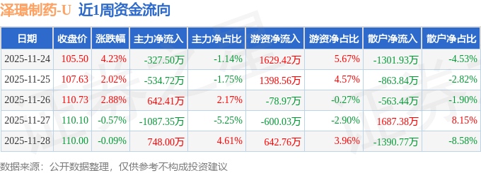 资金流向数据方面,本周泽璟制药主力资金合计净流出559.15万元,游资资金合计净流入2991.75万元,散户资金合计净流出2432.59万元。本周资金流向一览见下表: