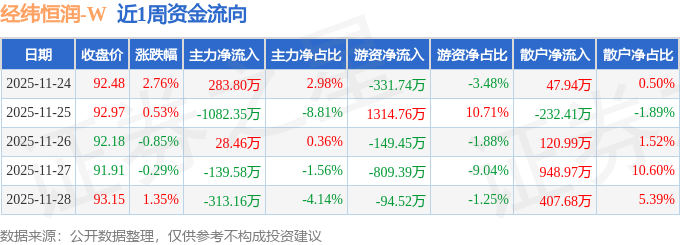 资金流向数据方面,本周经纬恒润主力资金合计净流出1222.83万元,游资资金合计净流出70.33万元,散户资金合计净流入1293.17万元。本周资金流向一览见下表: