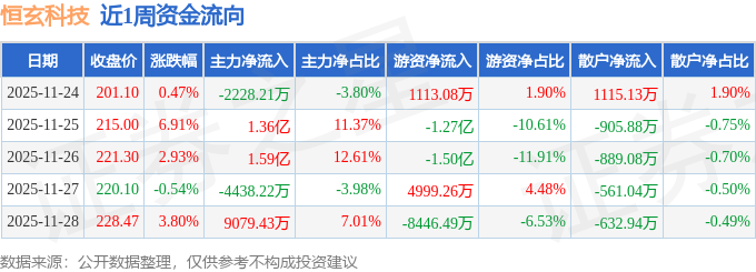 资金流向数据方面,本周恒玄科技主力资金合计净流入3.2亿元,游资资金合计净流出3.01亿元,散户资金合计净流出1873.82万元。本周资金流向一览见下表: