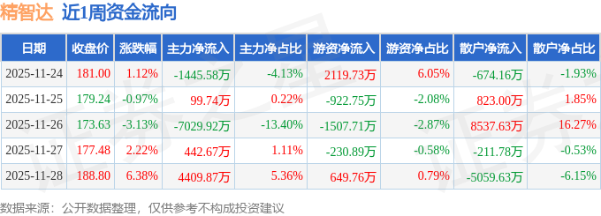 资金流向数据方面,本周精智达主力资金合计净流出3523.22万元,游资资金合计净流入108.15万元,散户资金合计净流入3415.07万元。本周资金流向一览见下表: