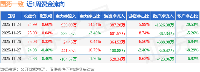沪深股通持股方面,截止2025年11月28日收盘,国药一致深股通持股数为589.52万股,占流通股比为123.0%。