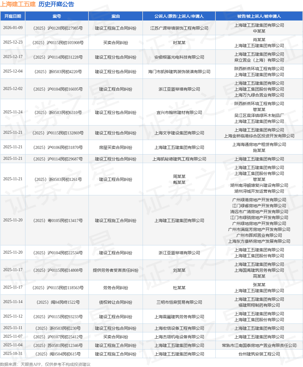 证券之星消息,根据天眼查APP显示,近日公布了一则上海建工五建集团有限公司作为被告/被上诉人的开庭公告,详细内容如下: