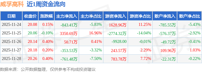 资金流向数据方面,本周威孚高科主力资金合计净流入1442.99万元,游资资金合计净流出119.0万元,散户资金合计净流出1323.99万元。本周资金流向一览见下表: