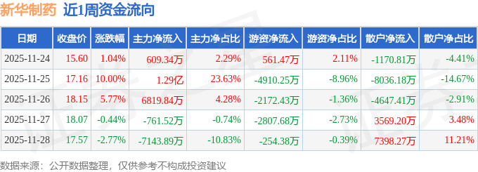 资金流向数据方面,本周新华制药主力资金合计净流入1.25亿元,游资资金合计净流出9583.27万元,散户资金合计净流出2886.92万元。本周资金流向一览见下表:
