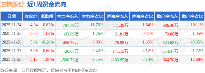 资金流向数据方面,本周浩物股份主力资金合计净流出961.21万元,游资资金合计净流入187.39万元,散户资金合计净流入773.83万元。本周资金流向一览见下表: