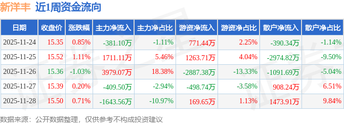 沪深股通持股方面,截止2025年11月28日收盘,新洋丰深股通持股数为1453.89万股,占流通股比为127.0%。