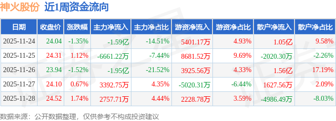 资金流向数据方面,本周神火股份主力资金合计净流出3.59亿元,游资资金合计净流入1.52亿元,散户资金合计净流入2.07亿元。本周资金流向一览见下表: