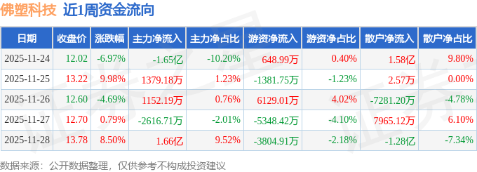 资金流向数据方面,本周佛塑科技主力资金合计净流入59.85万元,游资资金合计净流出3757.07万元,散户资金合计净流入3697.22万元。本周资金流向一览见下表: