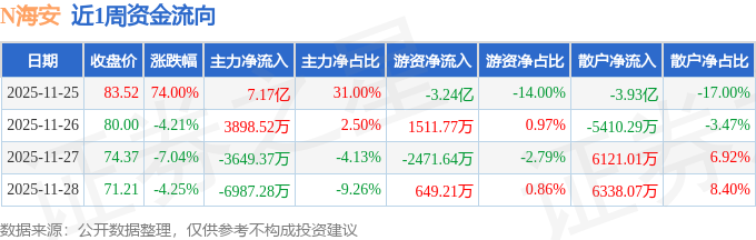 资金流向数据方面,本周C海安主力资金合计净流入6.5亿元,游资资金合计净流出3.27亿元,散户资金合计净流出3.23亿元。本周资金流向一览见下表: