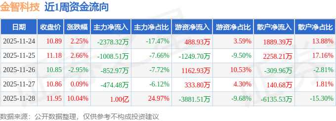 资金流向数据方面,本周金智科技主力资金合计净流入5302.76万元,游资资金合计净流出3145.55万元,散户资金合计净流出2157.21万元。本周资金流向一览见下表: