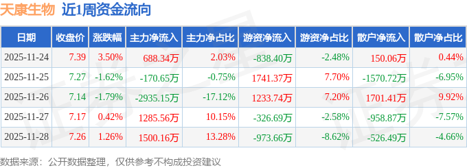 资金流向数据方面,本周天康生物主力资金合计净流入368.26万元,游资资金合计净流入836.35万元,散户资金合计净流出1204.61万元。本周资金流向一览见下表: