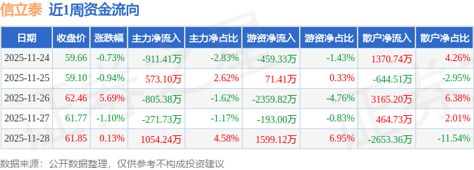 资金流向数据方面,本周信立泰主力资金合计净流出361.18万元,游资资金合计净流出1341.62万元,散户资金合计净流入1702.8万元。本周资金流向一览见下表: