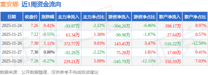 资金流向数据方面,本周富安娜主力资金合计净流入479.06万元,游资资金合计净流出722.24万元,散户资金合计净流入243.19万元。本周资金流向一览见下表: