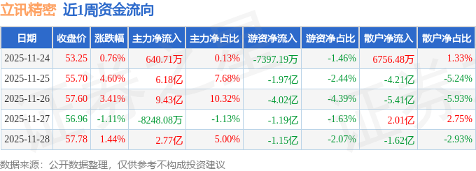 沪深股通持股方面,截止2025年11月28日收盘,立讯精密深股通持股数为5.18亿股,占流通股比为721.0%。
