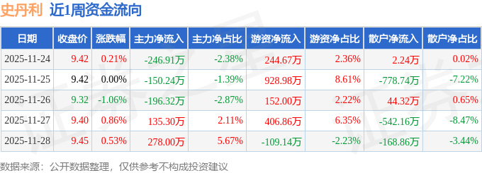 资金流向数据方面,本周史丹利主力资金合计净流出180.19万元,游资资金合计净流入1623.37万元,散户资金合计净流出1443.19万元。本周资金流向一览见下表: