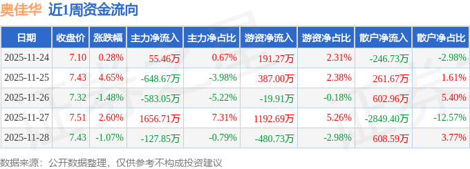资金流向数据方面,本周奥佳华主力资金合计净流入352.6万元,游资资金合计净流入1270.32万元,散户资金合计净流出1622.92万元。本周资金流向一览见下表: