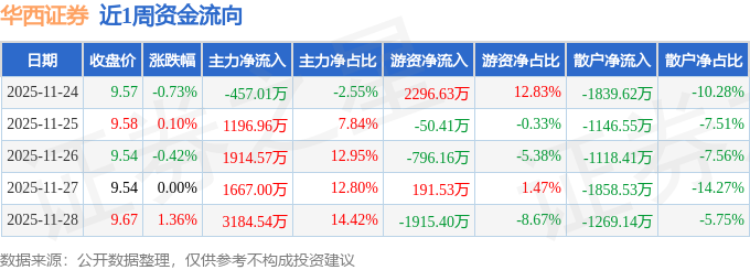 资金流向数据方面,本周华西证券主力资金合计净流入7506.07万元,游资资金合计净流出273.82万元,散户资金合计净流出7232.25万元。本周资金流向一览见下表:
