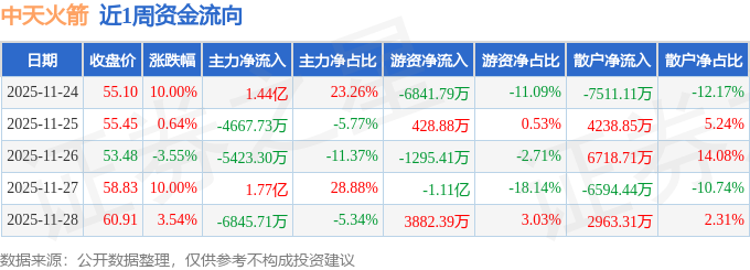 沪深股通持股方面,截止2025年11月28日收盘,中天火箭深股通持股数为16.84万股,占流通股比为11.0%。