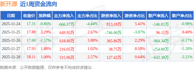 沪深股通持股方面,截止2025年11月28日收盘,新开源深股通持股数为159.02万股,占流通股比为35.0%。