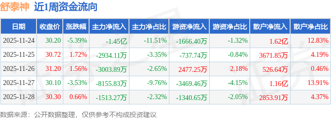 资金流向数据方面,本周舒泰神主力资金合计净流出3.01亿元,游资资金合计净流出4736.99万元,散户资金合计净流入3.49亿元。本周资金流向一览见下表: