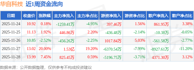 资金流向数据方面,本周华自科技主力资金合计净流入1.49亿元,游资资金合计净流出1.06亿元,散户资金合计净流出4266.33万元。本周资金流向一览见下表: