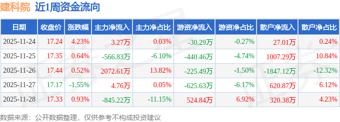 资金流向数据方面,本周建科院主力资金合计净流入668.59万元,游资资金合计净流出797.02万元,散户资金合计净流入128.43万元。本周资金流向一览见下表: