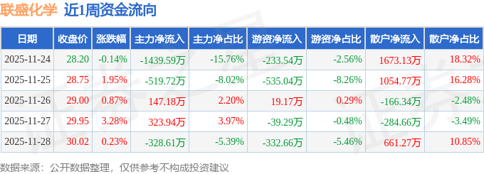 资金流向数据方面,本周联盛化学主力资金合计净流出1816.8万元,游资资金合计净流出1121.36万元,散户资金合计净流入2938.17万元。本周资金流向一览见下表: