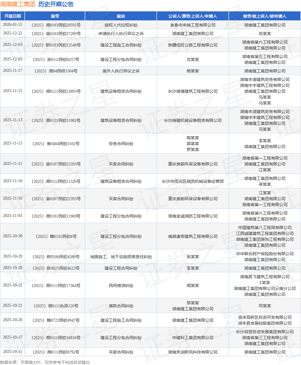 证券之星消息,根据天眼查APP显示,近日公布了一则湖南建工集团有限公司作为被告/被上诉人的开庭公告,详细内容如下: