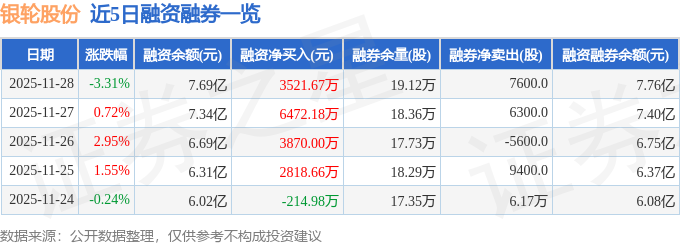 银轮股份融资融券信息显示,融资方面,当日融资买入7972.54万元,融资偿还4450.87万元,融资净买入3521.67万元,连续3日净买入累计1.39亿元。融券方面,融券卖出2.43万股,融券偿还1.67万股,融券余量19.12万股,融券余额642.43万元。融资融券余额7.76亿元。