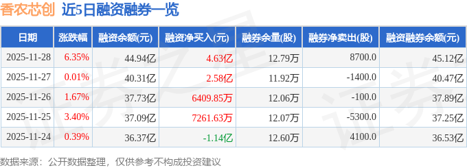 香农芯创融资融券信息显示,融资方面,当日融资买入11.92亿元,融资偿还7.29亿元,融资净买入4.63亿元,净买入额两市排名第3,连续3日净买入累计7.85亿元。融券方面,融券卖出9900.0股,融券偿还1200.0股,融券余量12.79万股,融券余额1814.77万元。融资融券余额45.12亿元。