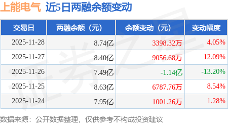 证券之星消息,11月28日,上能电气(300827)融资买入1.95亿元,融资偿还1.61亿元,融资净买入3385.29万元,融资余额8.71亿元,近20个交易日中有12个交易日出现融资净买入。