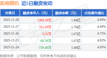 证券之星消息,11月28日,凯格精机(301338)融资买入3477.03万元,融资偿还2107.74万元,融资净买入1369.29万元,融资余额1.84亿元,近3个交易日已连续净买入累计1685.89万元。