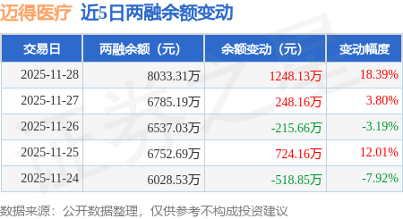 证券之星消息,11月28日,迈得医疗(688310)融资买入1991.7万元,融资偿还743.57万元,融资净买入1248.13万元,融资余额8033.31万元,近20个交易日中有11个交易日出现融资净买入。