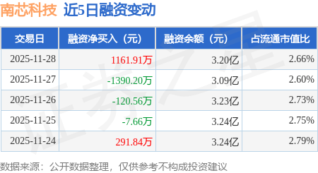 证券之星消息,11月28日,南芯科技(688484)融资买入2647.19万元,融资偿还1485.28万元,融资净买入1161.91万元,融资余额3.2亿元。