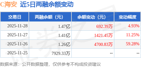 证券之星消息,11月28日,C海安(001233)融资买入4052.51万元,融资偿还3360.12万元,融资净买入692.39万元,融资余额1.47亿元,近3个交易日已连续净买入累计6814.67万元。