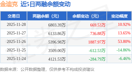 证券之星消息,11月28日,金迪克(688670)融资买入3028.86万元,融资偿还2359.33万元,融资净买入669.53万元,融资余额6803.39万元,近3个交易日已连续净买入累计3294.38万元,近20个交易日中有12个交易日出现融资净买入。