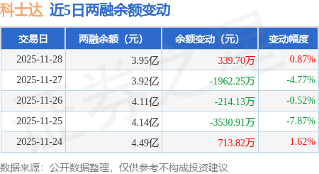 证券之星消息,11月28日,科士达(002518)融资买入3899.48万元,融资偿还3556.74万元,融资净买入342.74万元,融资余额3.95亿元。