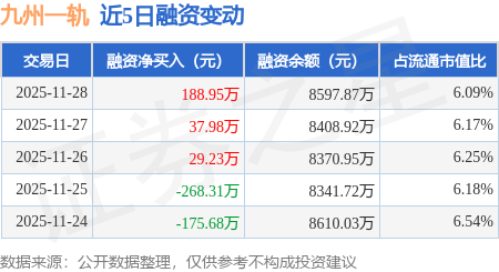 融资融券余额8597.87万元,较昨日上涨2.25%。
