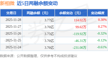 证券之星消息,11月28日,新相微(688593)融资买入2862.13万元,融资偿还2748.15万元,融资净买入113.98万元,融资余额3.77亿元。