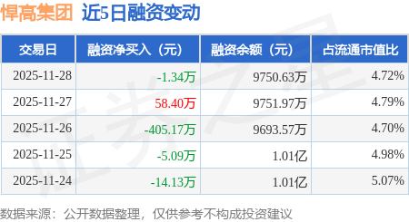 证券之星消息,11月28日,悍高集团(001221)融资买入781.5万元,融资偿还782.85万元,融资净卖出1.34万元,融资余额9750.63万元。